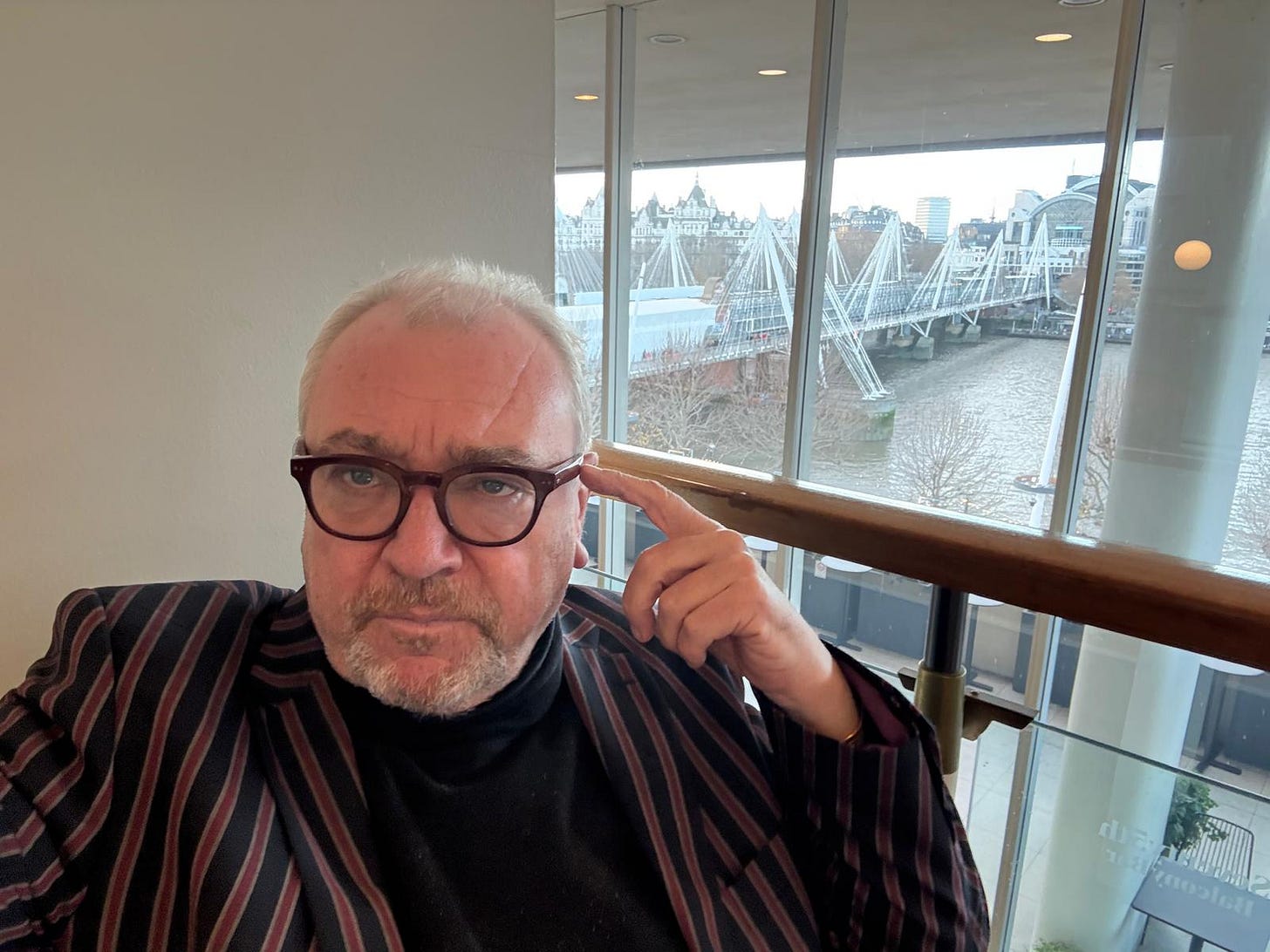 The train journey over, I am now in the members lounge of the Southbank Centre, on the 6th floor of the Royal Festival Hall. The Thames is the colour of brown Windsor soup. I am looking across at Shell Mex House and the Savoy. A couple of hundred metres west the newish Hungerford Footbridge looks like the derrick of a collapsed oil rig, far less elegant than its dilapidated and dangerous predecessor designed by Brunel and favoured by suicides.